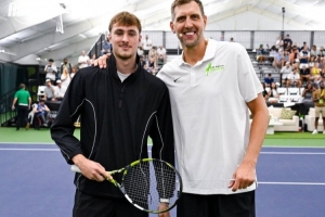 体育资讯9月14日讯 今日独行侠名宿诺维茨基的基金会举办了第七届名人网球赛。
