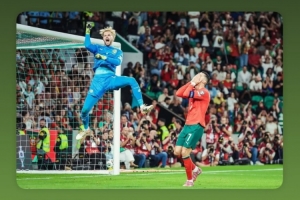爱尔兰门将凯莱赫社媒晒扑出C罗点球后庆祝的照片,配文:“虽然未能如愿,但仍有积极因素可以带到周二的比赛之中(对阵亚美尼亚)。”