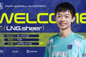 体育资讯12月06日讯 官方消息,苏州LNG俱乐部宣布人员变动消息,前JDG上单选手、自由人Sheer加盟队伍,随队备战2026赛季。